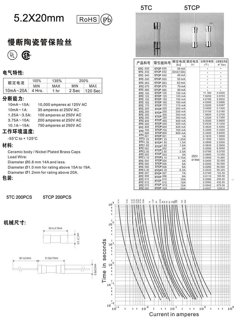 5x20mm陶瓷慢斷保險絲